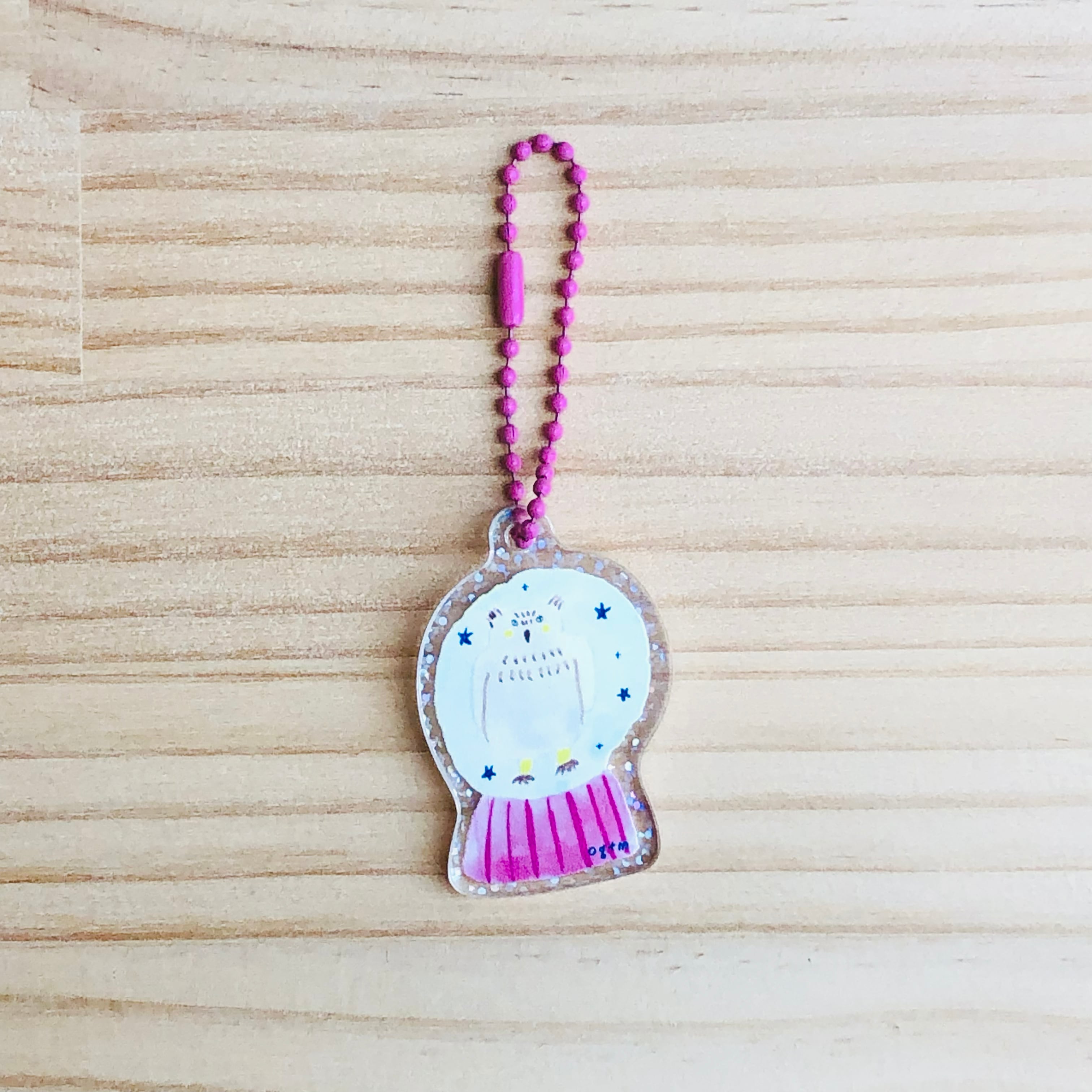 アクリルキーホルダー/みみずくのスノードーム